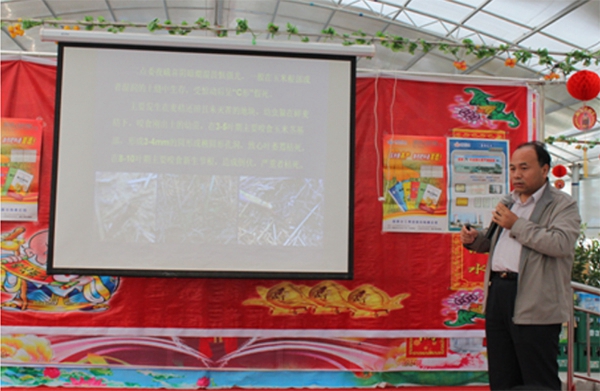 經銷商們認真聽取劉教授的知識講解,在講到比較關鍵的問題時,大家會仔細做好筆記,為回去后給基層的農民講解做好記錄。