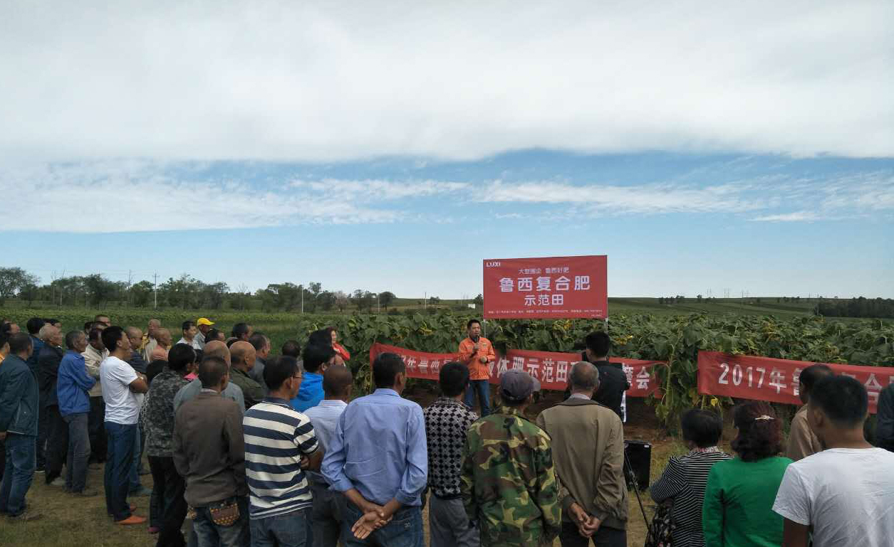 在此次回訪過程中,化肥事業部銷售公司市場總監畢景龍經理也來到田間地頭,向大家講解魯西集團的企業文化,對于魯西產品的國企品質也進行了詳細介紹,在場的農民朋友都聽得津津有味。隨后,畢經理還介紹了魯西肥料在葵花種植上的應用,主要強調了魯西肥在葵花生長各個階段的使用數量及使用方法。目前葵花距離收獲還有一段時間,劉大哥激動的告訴我們,葵花的產量一般來講大概在300斤/畝左右,但是看今年葵花的長勢,一畝地的產量至少在400斤以上!現場農戶通過對使用魯西肥料的葵花長勢進行觀摩,對魯西肥料也充滿了信心,紛紛表示明年一定要嘗試一下。