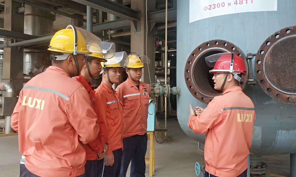 “脫氨塔只有大修的時(shí)候才會打開,今天重點(diǎn)給大家講一下脫氨塔內(nèi)部結(jié)構(gòu)、運(yùn)行原理……”8月20日這天,13名新進(jìn)大學(xué)生在魯西集團(tuán)有機(jī)胺事業(yè)部DMF裝置工藝技術(shù)員李玉超的講解下,了解了合成塔觸媒、脫氨塔分布器、換熱器等現(xiàn)場設(shè)備各部件結(jié)構(gòu)、參數(shù)性能等。李玉超坦言,“今年6月份新進(jìn)廠的員工已經(jīng)基本掌握了工藝流程、崗位操作知識,但設(shè)備結(jié)構(gòu)和原理一直是學(xué)習(xí)的難點(diǎn)。為了彌補(bǔ)這個(gè)問題,我們利用檢修的機(jī)會,組織新進(jìn)員工進(jìn)行現(xiàn)場培訓(xùn),近距離觀察了解設(shè)備內(nèi)部構(gòu)造、運(yùn)作原理,通過看得見、摸得著的培訓(xùn),更能讓大家易懂易學(xué)易記?!?/span>