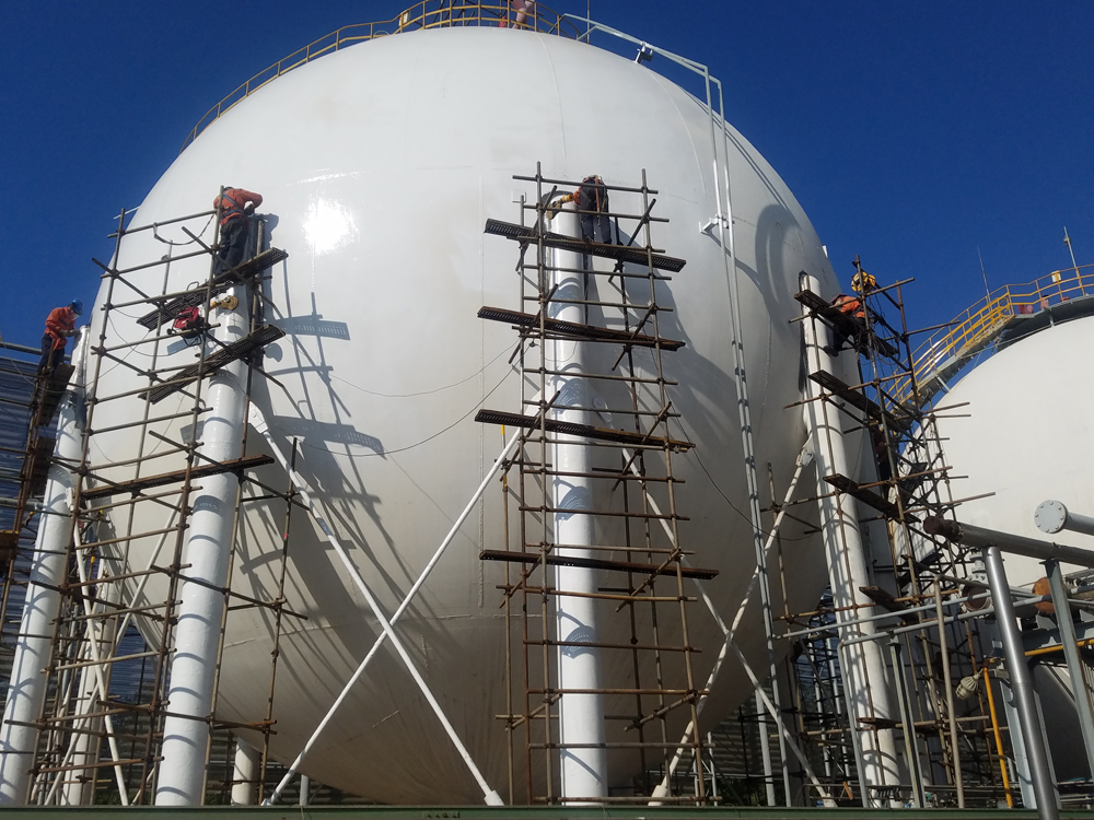 4月19—24日,魯西集團氟材料事業部的維保人員經過為期六天的緊張忙碌,完成了26米高、2000立方容積球罐井字架架桿扎設工作,為球罐防腐刷漆做好了前期準備工作,首次取得了架桿扎設無外協、費用零支出的目標,實現了自主實施。