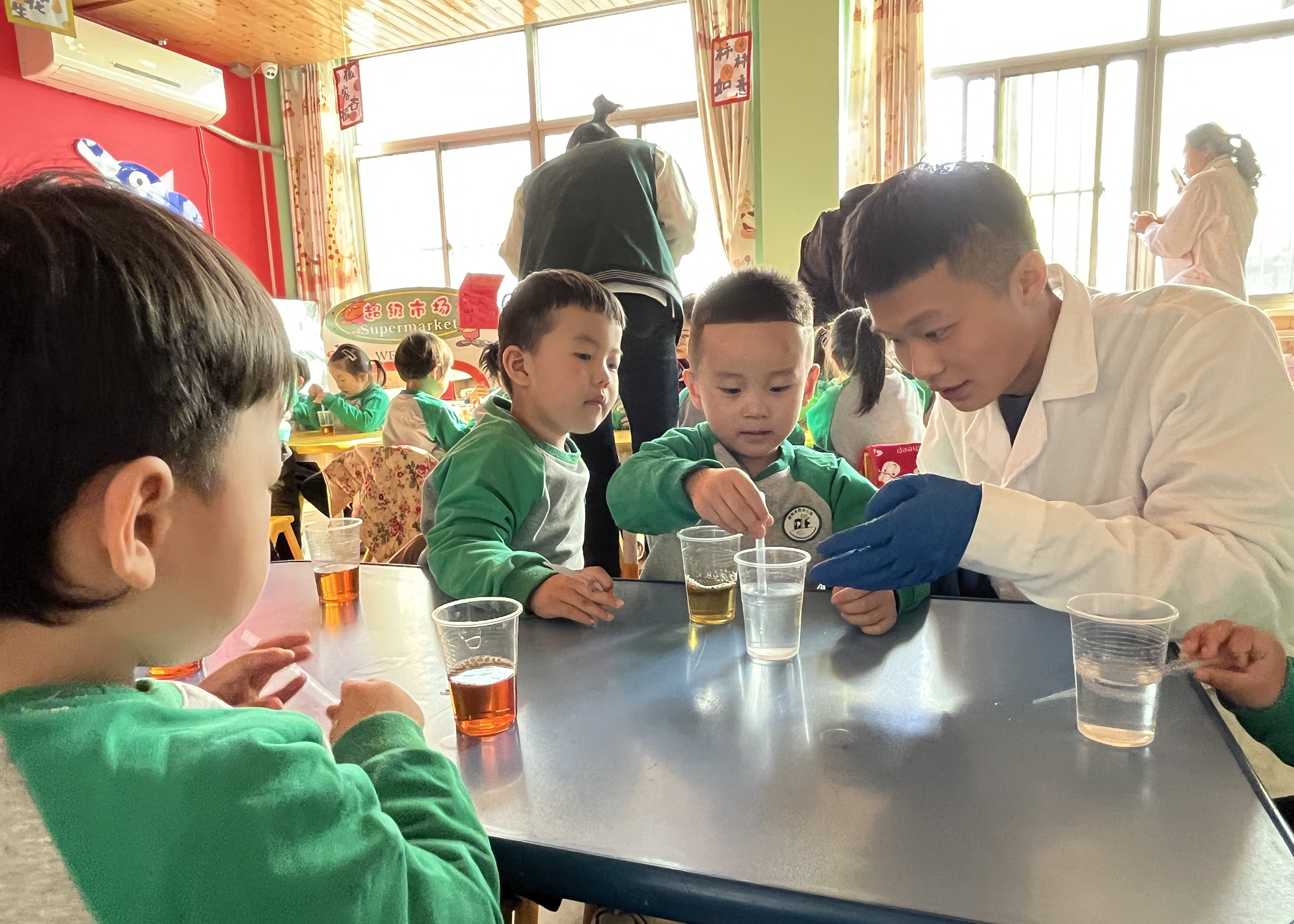 海源幼兒園中二班的教室里不時傳來小朋友的的歡呼聲,“顏色變了、顏色變了.....”小朋友們瞪大了眼睛觀看燒瓶中液體顏色的變化,隨著溶液顏色的變化爆發出來熱烈的掌聲。在這愉快的氛圍中,魯西化工工程學院的志愿者和孩子們共同完成了一次魔法實驗課。臨別之際,海源幼兒園園長王艷高興地說道:“看到孩子們天真無邪的笑臉和充滿好奇的眼睛,感謝你們給孩子們的人生帶來了生動的科普實驗課?!?