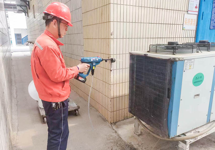 魯西集團的員工對付這種“白色”隱患,也是各顯神通。煤化一事業部的現場操作工巡檢時隨身攜帶手持式便攜沖洗工具,隨時對現場地面及一些設備上的積絮進行沖洗;雙氧水事業部除了在現場噴灑清水外,還利用沾濕的擦機布,對粘上柳絮的防護濾網進行滾動式擦拭;酮酸事業部現場員工在硫磺制酸運行空氣風機門窗上安裝窗紗,有效避免楊柳絮的飛入。